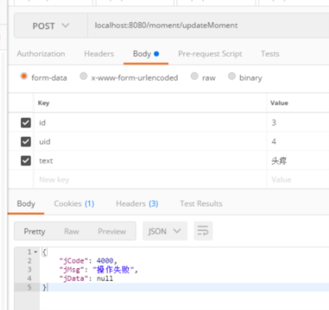 localhost:8080/moment/getOneMoment?id = 5 & uid = 3